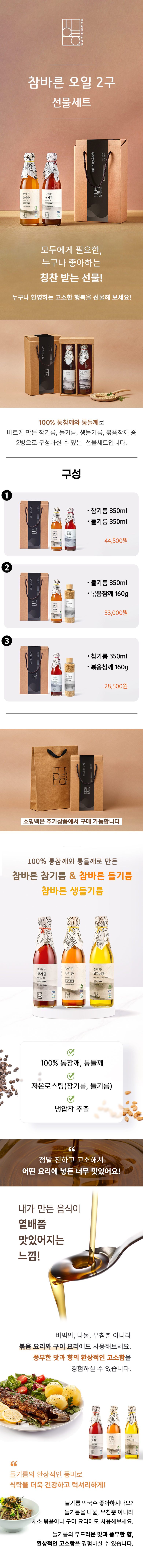 350ml 참바른 오일과 참깨로 구성하실 수 있습니다.