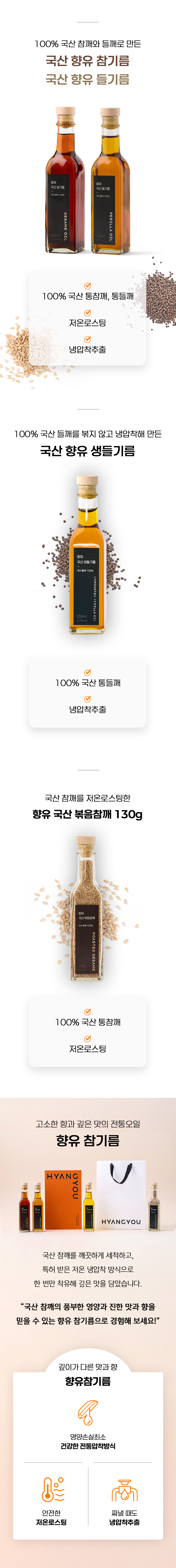 국산오일 250ml와 국산 볶음참깨 130g으로 구성된 선물세트