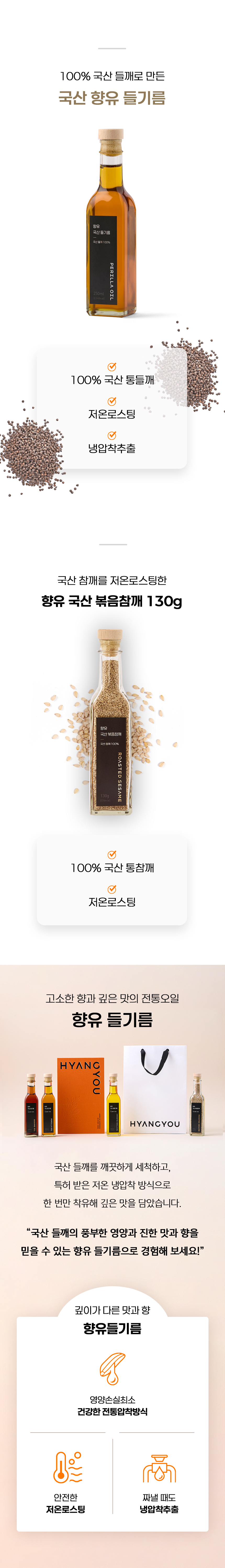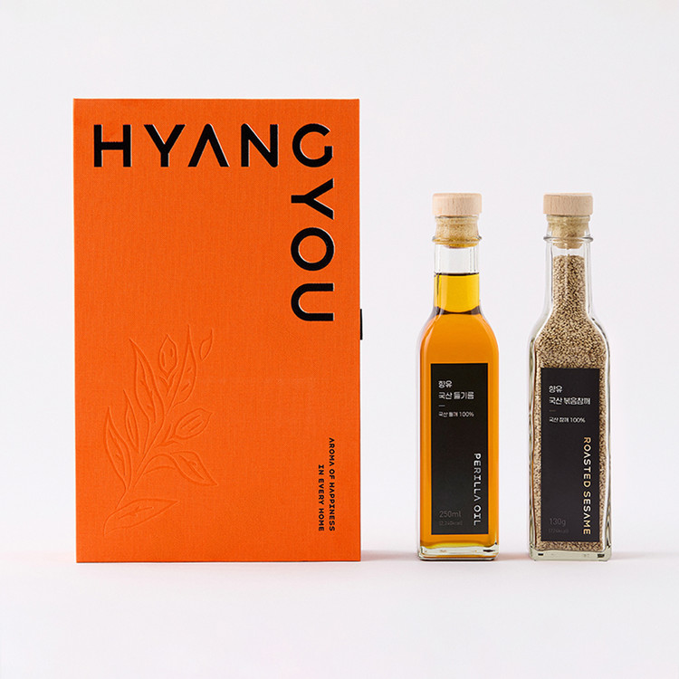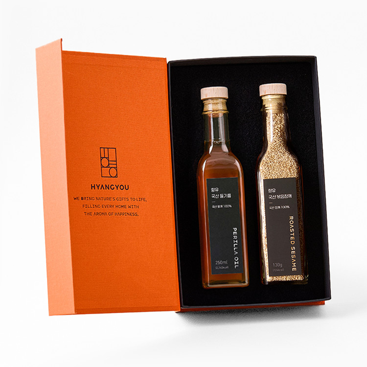 국산들기름 250ml와 국산 볶음참깨 130g으로 구성된 선물세트